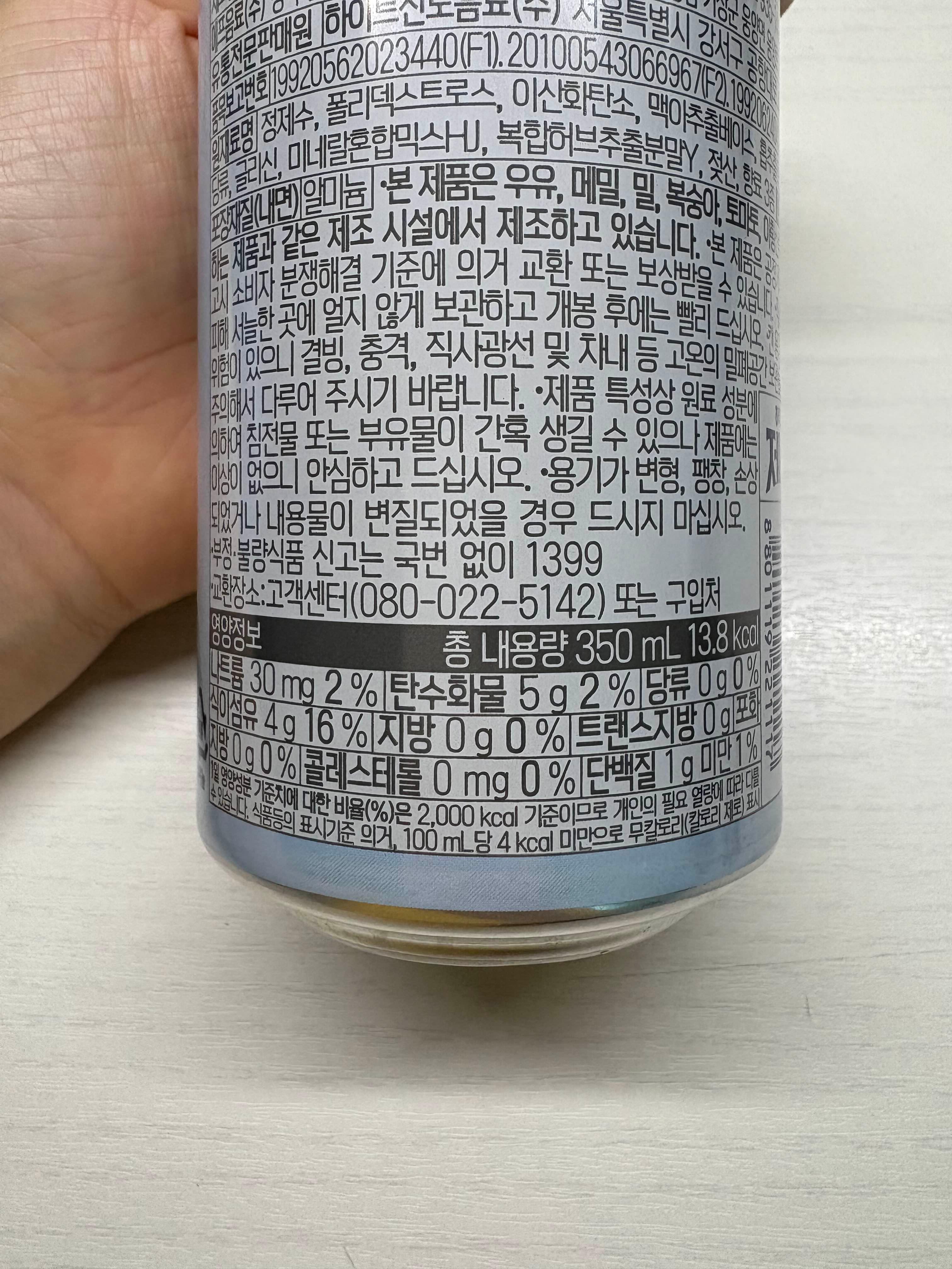 칼로리는 350ml 기준으로 13.8kcal로 거의 제로에 가깝긴 하나 완전이 0은 아님!