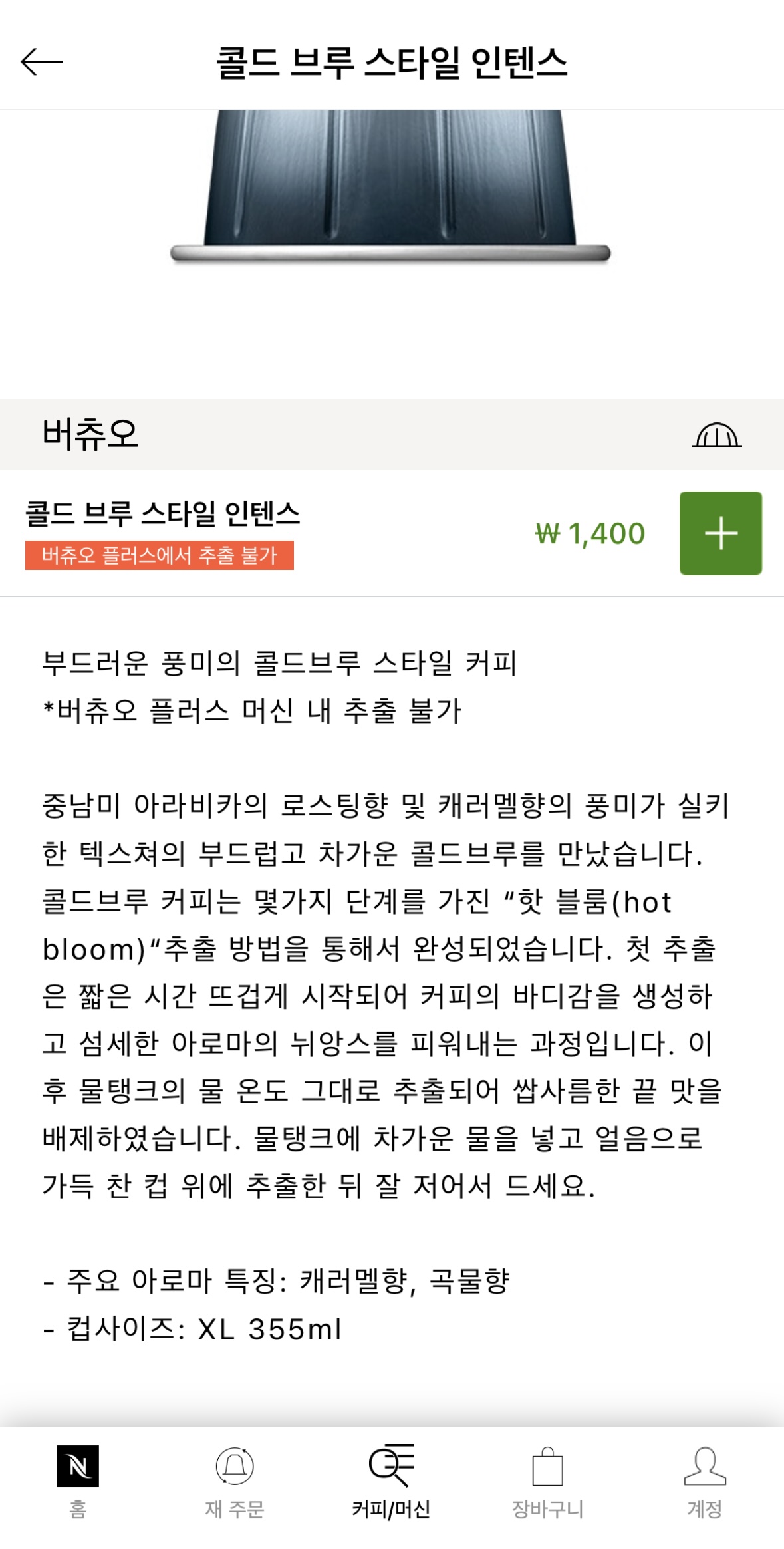 아예 추출 자체가 콜드브루 스타일로 뜨겁지 않게 되는 캡슐은 처음인 것 같아요.