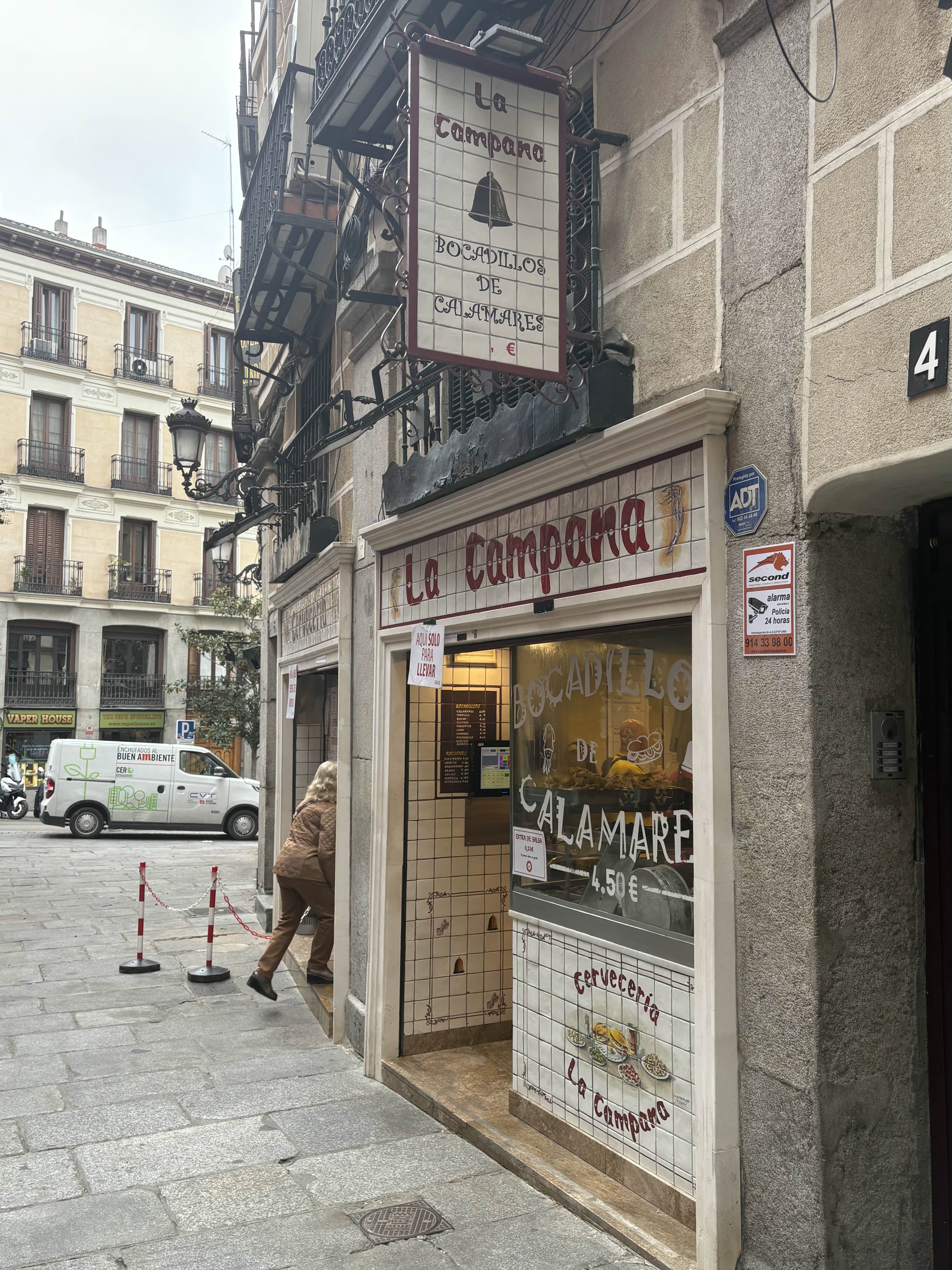 마드리드에서 먹어봐야 하는 음식으로 꼽히는보카디요 데 칼라마레스 (bocadillos de calamares)오징어튀김 샌드위치 인데요.마드리드 여행 준비하며 찾아보시면 안 보고 넘어갈 수 없는 맛집인 La campana다녀온 후기입니다! 마드리드에선 유명 맛집만 골라다녀서 그런가가는 매장마다 매장 내에서 먹는 것, 포장만이 두개 줄을 꼭 구분해서 서는 것 같아요.츄러스 맛집 산 히네스도 그랬는데 앞에서 잘 확인하고 줄 서세요!저는 매장 안에서 이용했고 11시 조금 넘은 시간에 방문했습니다. 주문한 메뉴는 보카디요 데 깔라마레스, 오징어튀김 샌드위치와 맥주 주문했습니다.주문 받으시면서도 쉬질 않고 움직이고 계셨는데눈치껏.. 타이밍 맞춰 잘 주문하셔야 해요 ㅋㅋㅋㅋ맥주는 그냥 beer 했더니 아래와 같이 ..